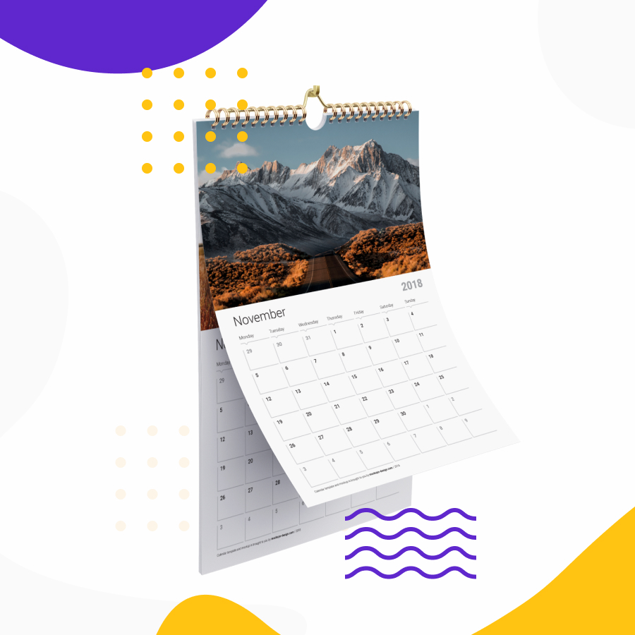 jenis kalender yang paling banyak diminati. Kalender dinding biasanya terdiri dari 2 sampai 12 halaman per kalender. Biasa dipajang di bagian dinding rumah atau ruangan kerja sehingga mudah digunakan. Kalender ini menggunakan material kertas yang lebih tipis, seperti kertas HVS 80 Gsm, HVS 100 Gsm, artpaper 150 dan Art Karton 260gsm.