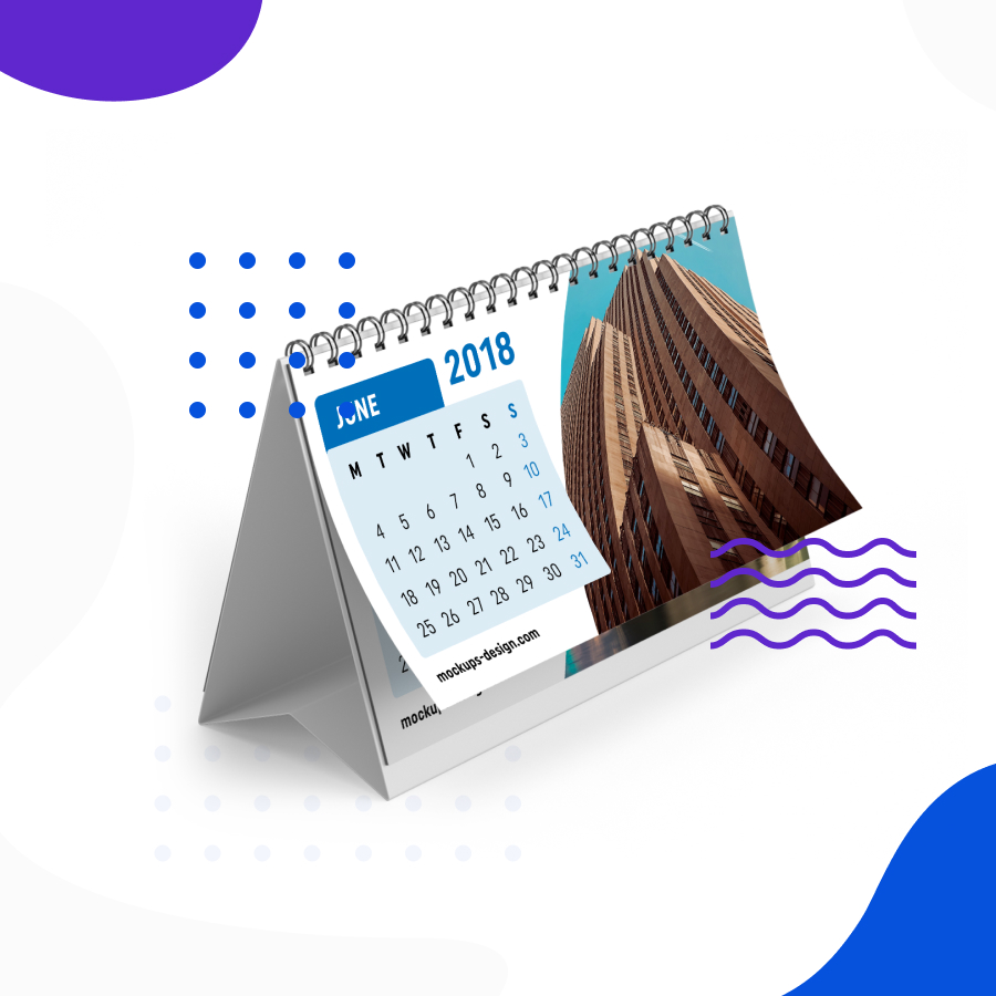 Kalender meja adalah janis kalender yang memiliki bentuk yang lebih simple dan modern. Biasa diletakkan di atas meja kerja, bufet rumah, atau dimana saja. Kalender meja biasanya terdiri dari 4 sampai 13 halaman. Halaman depan biasanya digunakan sebagai cover kalender dengan tampilan gambar penuh tanpa menyematkan sistem penanggalan. Baru di halaman kedua dan seterusnya dibuat sistem penanggalan dengan tampilan berbeda. Material kertas yang digunakan untuk kalender ini lebih tebal, seperti Art Karton 210, Art Karton 230, dan Art Karton 260;